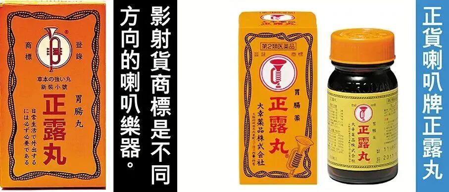 正牌的「太和洞久咳丸」被山寨成「太禾洞久咳丸」,「喇叭牌正露丸」的商標圖案被故意反着印。對不熟悉繁體字的內地遊客來說,這些細微差別真的很難察覺。騙子就是吃準了這一點!