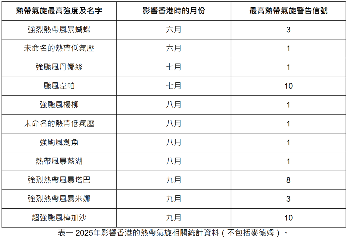 文章引述統計資料,指在過去10年(2015年至2024年),當中有5年曾經有熱帶氣旋於11月或12月進入香港500公里範圍內。綜合考慮最新「ENSO」(厄爾尼諾及拉尼娜的海洋現象,以及與之對應的南方濤動大氣現象)狀態的影響及不同氣候模式預報,預料副熱帶高壓脊會在2025年10月至11月初大部分時間保持西伸態勢,而期間西太平洋海面溫度亦會略高於氣候平均。這些條件將繼續有利熱帶氣旋在西北太平洋發展並移入南海。