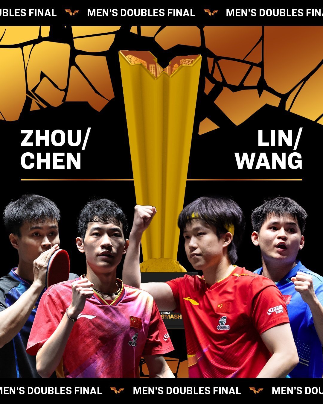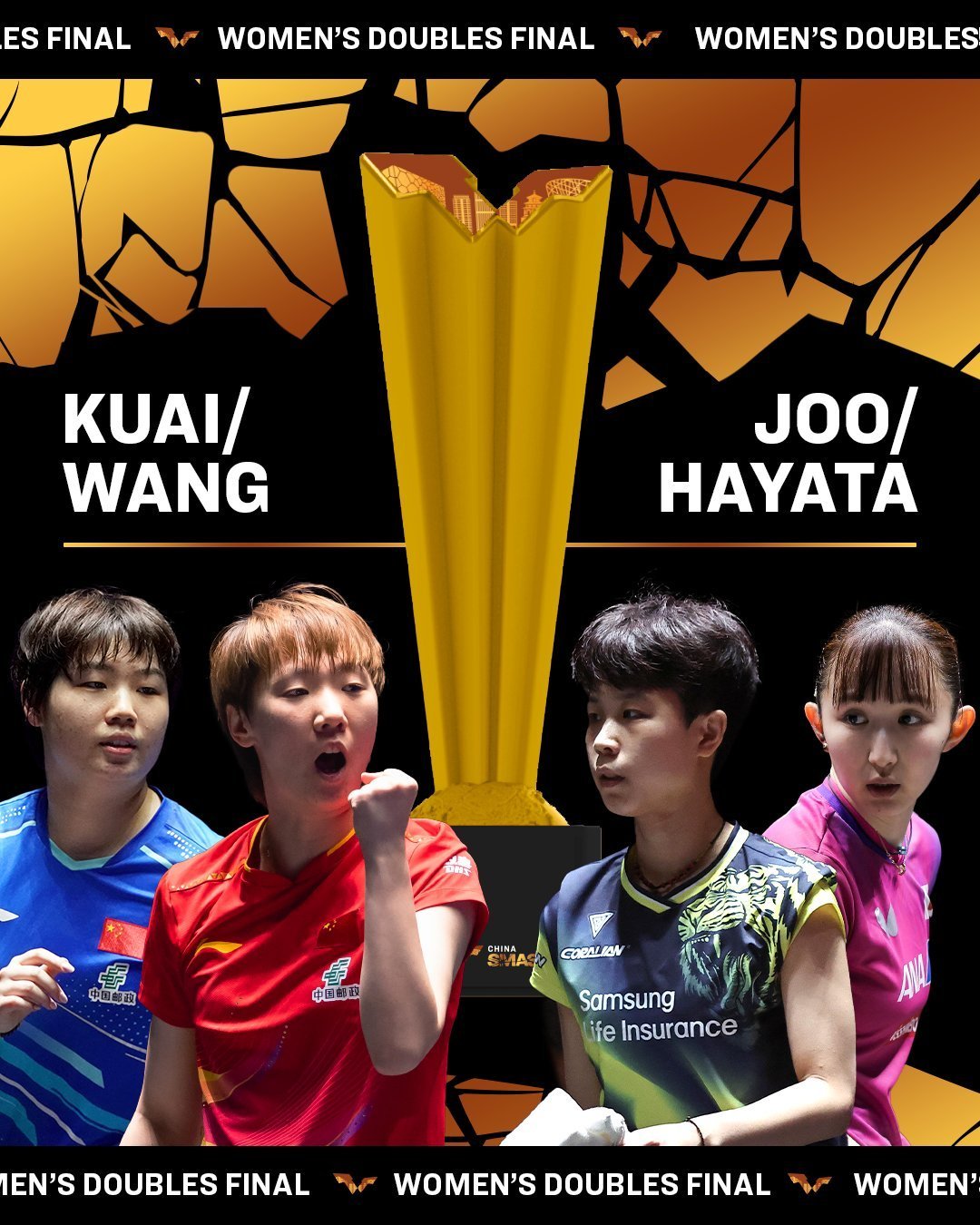 今午12時,蒯曼/王曼昱將對陣早田希娜/朱芊曦衝擊女雙冠軍;今晚18時30分,林詩棟/王楚欽將對陣周啟豪/陳俊菘衝擊男雙冠軍。