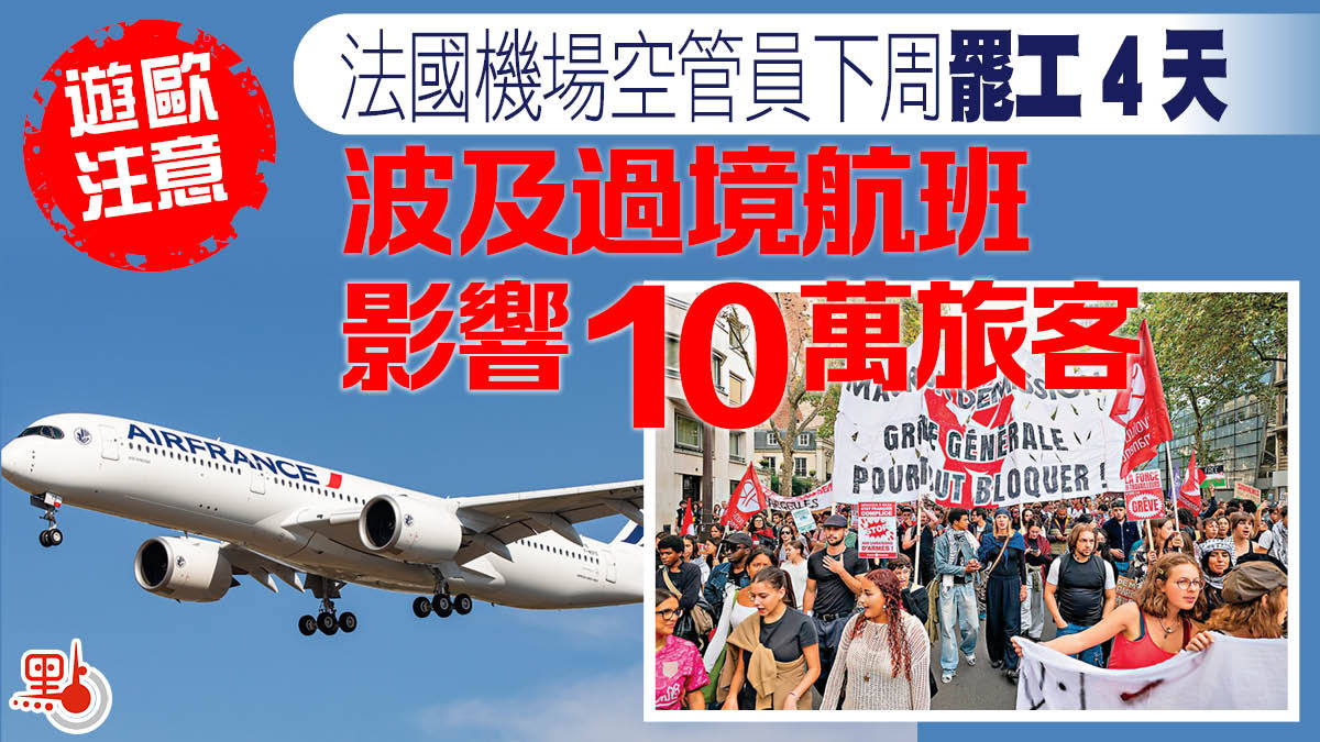歐洲航空旅客下周恐面臨大規模航班混亂。法國最大空中交通管制員工會SNCTA宣布,下周二(10月7日)至下周五早上發動罷工。瑞安航空公司行政總裁奧利里警告,屆時約有10萬名旅客的航班可能取消,損失估計高達2,000萬英鎊(約2.1億港元)。