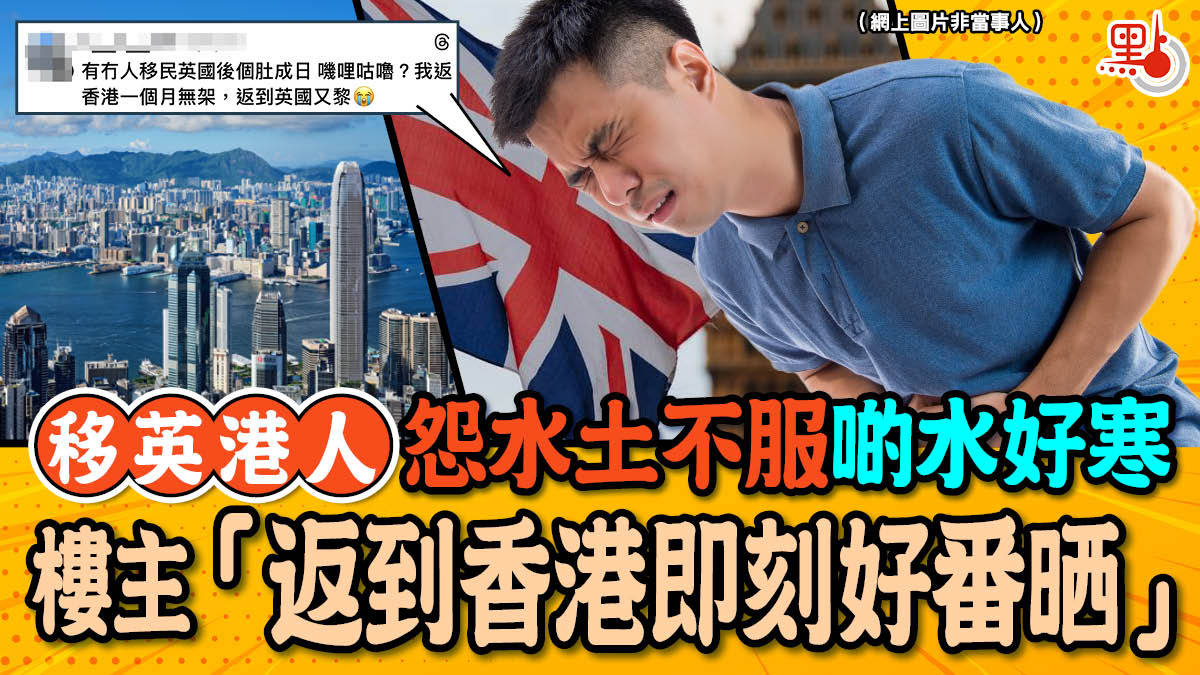 【點新聞報道】英國的硬水令不少移英港人水土不服,一名移英近三年的港男發文大呻,移英後肚子成日叫個不停,但在香港明明冇事,「有冇人移民英國後個肚成日嘰哩咕嚕?我返香港一個月無㗎,返到英國又嚟」,結果釣出不少同路人的相同遭遇。