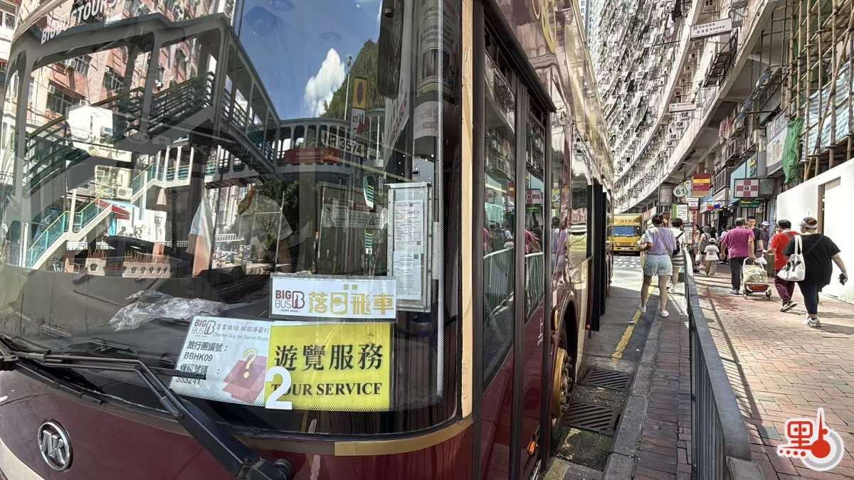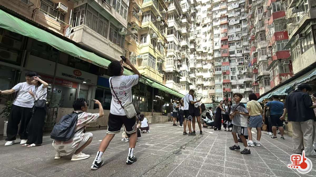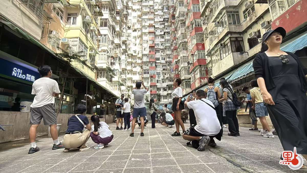 點新聞記者今日在鰂魚涌看到,有「落日飛車」之稱的敞篷觀光巴士接載大量遊客到鰂魚涌「怪獸大廈」打卡,現場可見來自韓國、西班牙、日本等不同國家和地區的遊客在擺pose與「怪獸大廈」合影。