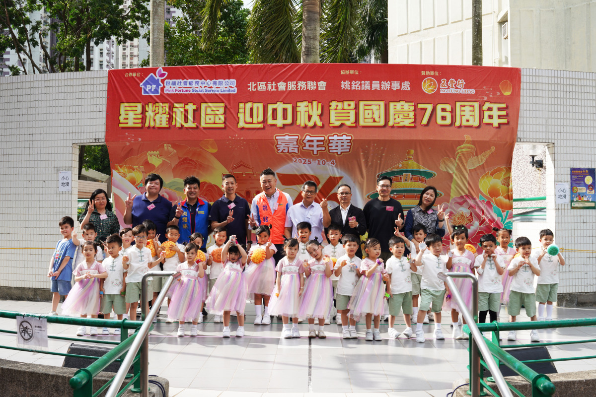 【點新聞報道】由粉福社會服務中心有限公司、北區社會服務聯會及五豐行有限公司聯合主辦、姚銘議員辦事處協辦的「星耀社區迎中秋賀國慶76周年嘉年華」,於10月4日假粉嶺華心邨露天劇場隆重舉行。活動旨在與居民一同歡度國慶與中秋佳節,促進社區共融,營造喜慶祥和的節日氣氛。