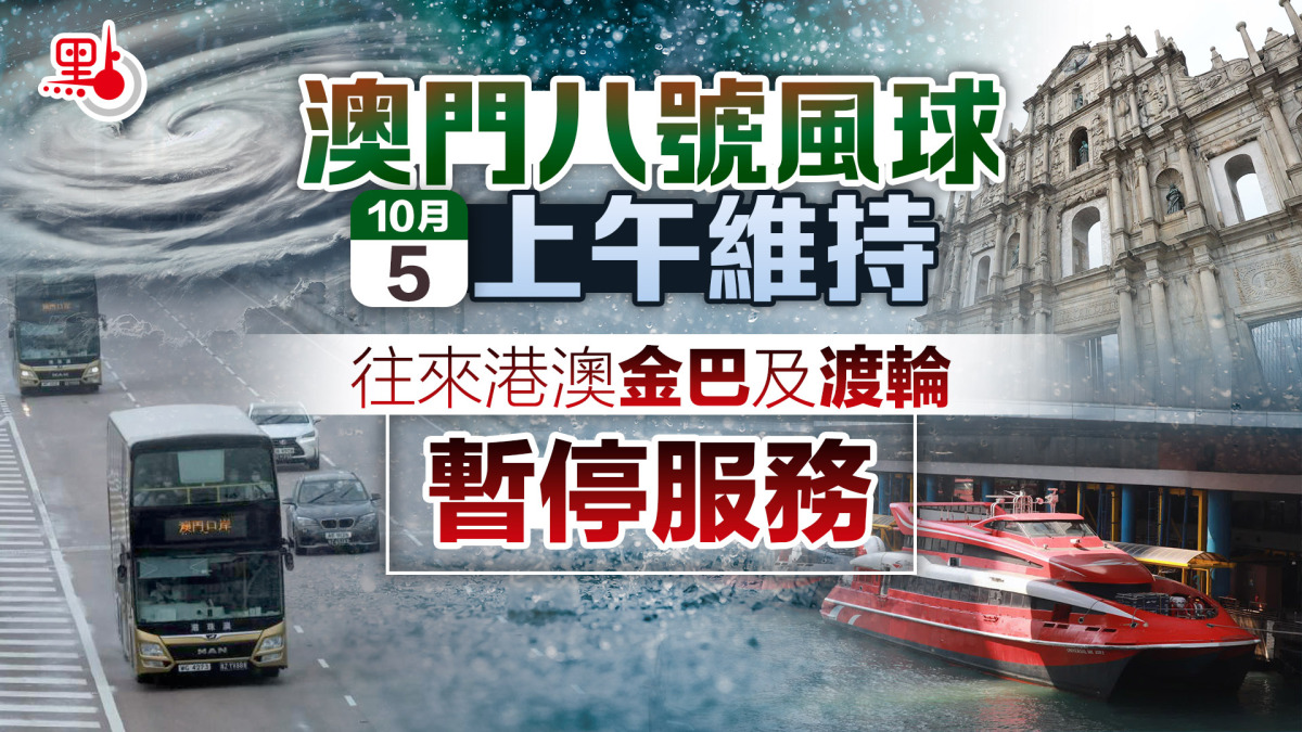 金光飛航表示,由於澳門現正懸掛八號風球,為安全起見,金光飛航10月5日往來香港及澳門的所有航班暫停服務,直至另行通知。噴射飛航網站亦顯示,來往港澳的所有航班已停航。