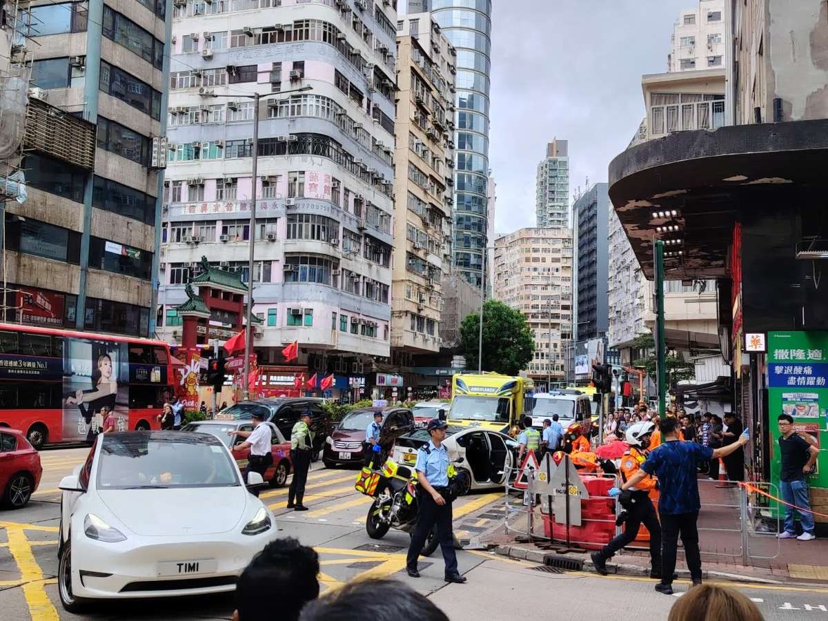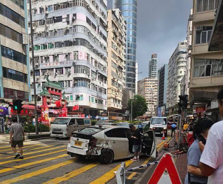 【點新聞報道】佐敦發生交通意外。事發今日(5日)下午2時03分,警方接報佐敦道5車相撞,涉及3架私家車及2部巴士,造成至少8人受傷。據了解,事發時一輛銀色私家車沿佐敦道行駛,當駛至上海街十字路口時懷疑突然失控,撼撞前方一輛白色私家車車尾,其中一輛私家車繼而剷上行人路。當時交通燈位有不少途人等候過路,眾人赫見發生意外時俱倉惶逃生。