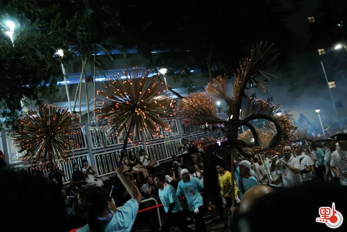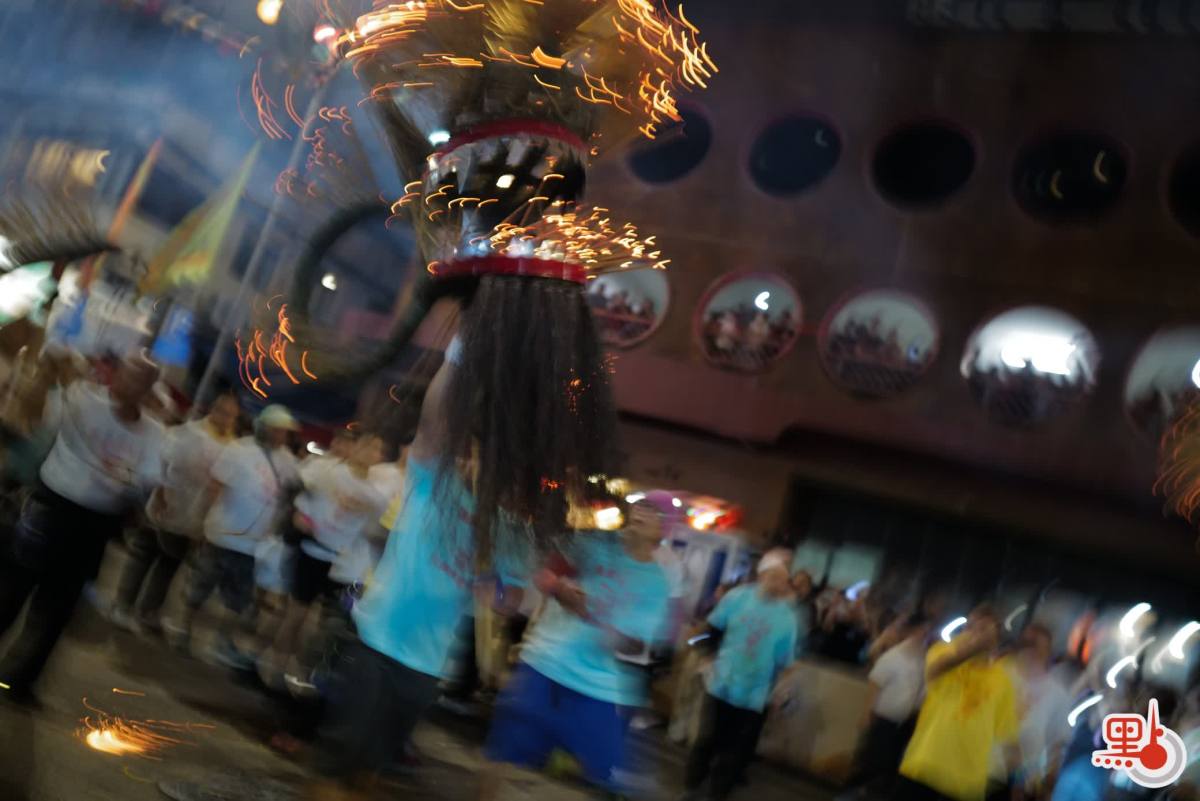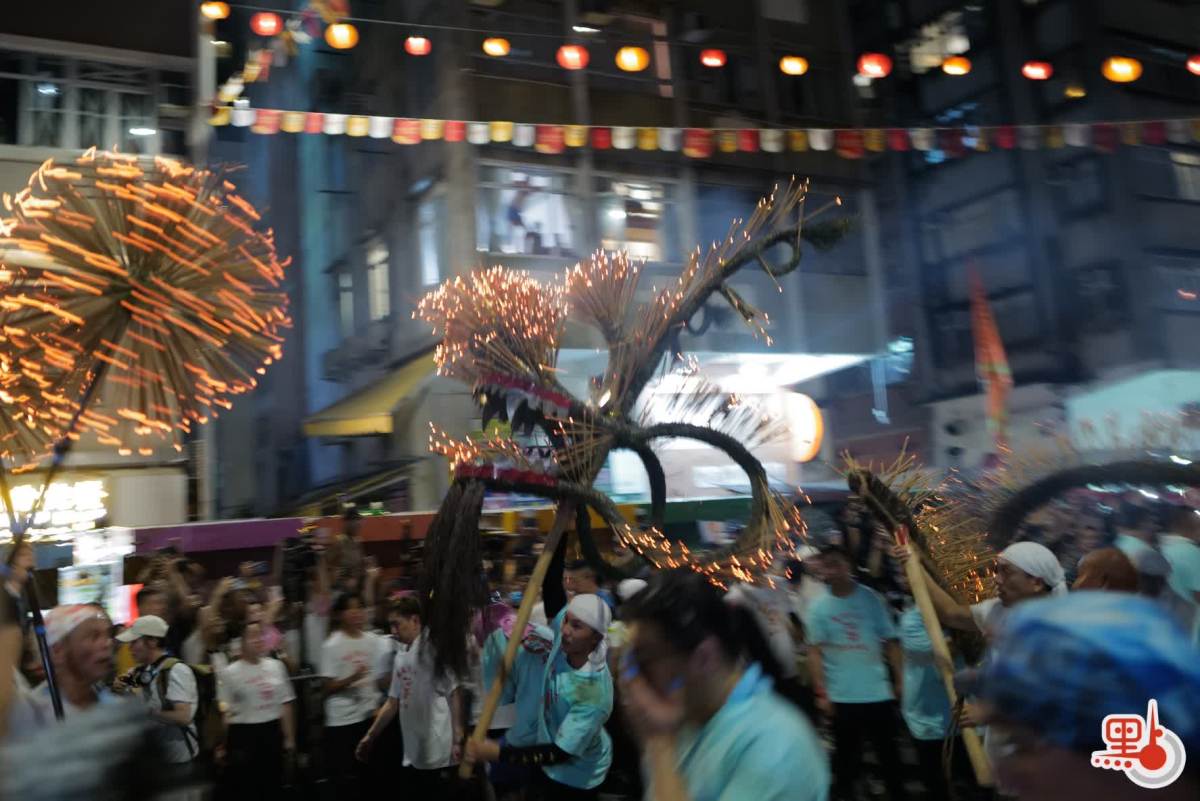 【點新聞報道】鑼鼓喧天,火光搖曳,一條長達67米的火龍在夜幕中蜿蜒遊走,點燃了中秋佳節的熱情。這條火龍由300多位健兒引領,龍身上插滿過萬支燃燒的長壽線香,伴隨火龍同行的還有由小朋友舞動的LED小火龍。大坑舞火龍由今晚(5日)起至7日一連三日舉行,在浣紗街至銅鑼灣道之間穿梭。今日下午,不少市民早早在浣紗街路旁「霸位」等候觀看這一年一度的盛事。現場有遊客及市民接受點新聞採訪,大讚氣氛熱鬧,舞龍隊員「好功夫」,並呼籲繼續傳承舞火龍的傳統文化。