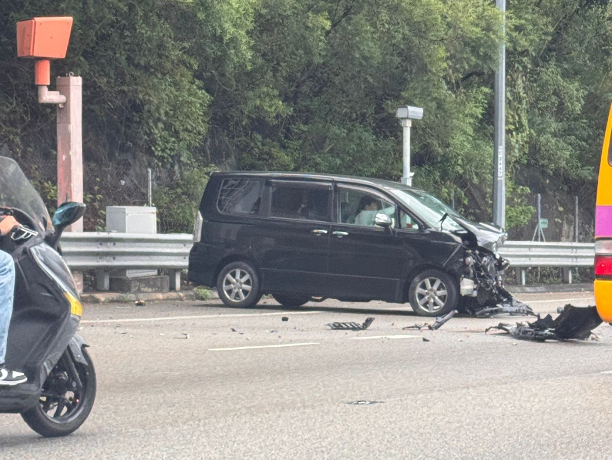【點新聞報道】吐露港公路發生交通意外。事發今日(6日)上午8時02分,大埔吐露港公路一架黑色七人車往上水行駛至近半春園時,懷疑突然失控撞向右邊石壆,繼而撞向一架客貨車的車尾,再撼向另一側路壆。七人車車頭嚴重損毀,45歲姓張男司機一度陷半昏迷被困車廂,其後回復清醒。客貨車上53歲姓蘇男乘客報稱胸痛不適,兩人由救護車送往那打素醫院救治。警方正調查意外原因。