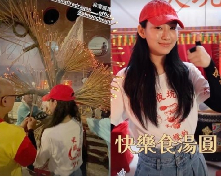 全長67米的火龍由1.2萬炷長壽線香組成,由300名健兒合力舞動,火龍穿梭於大坑的大街小巷,吸引大批市民及旅客圍觀。身處其中的Gigi,事後在IG限時動態分享多張舞火龍花絮照,並留言:「榮幸,感謝!非常感謝。」Gigi還祝大家「中秋節快樂﹑人月兩團圓﹑快樂食湯圓」。