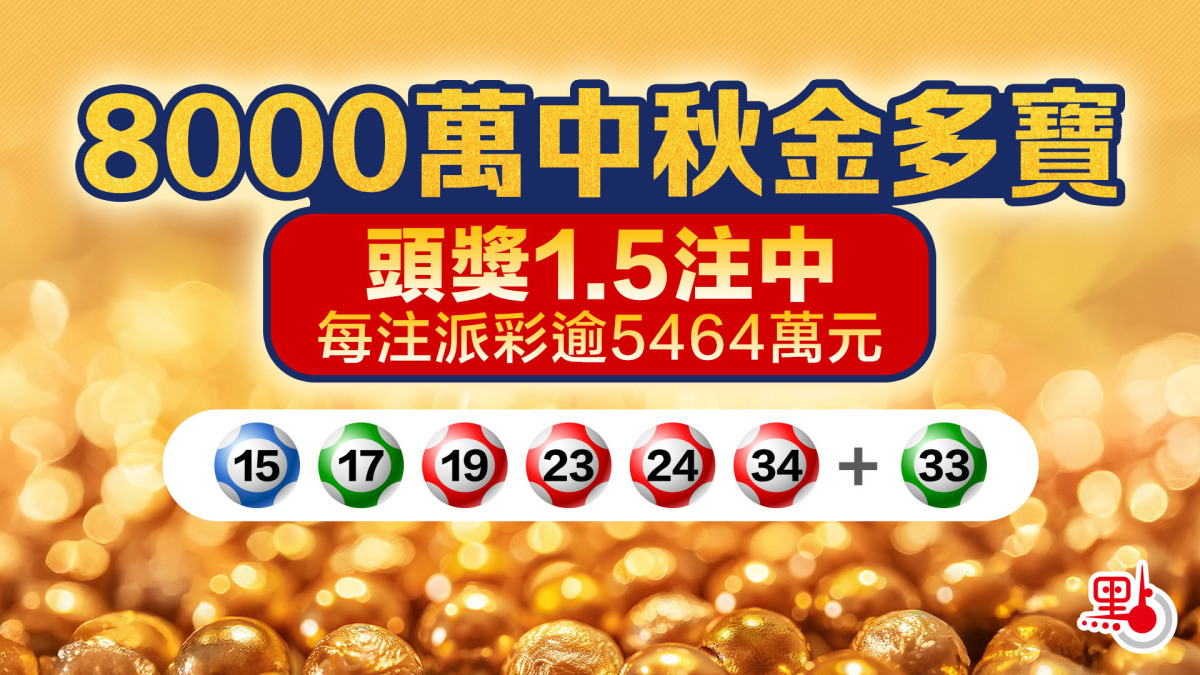 【點新聞報道】六合彩中秋金多寶今晚(6日)攪珠,若以10港元一注獨中,估計頭獎基金有機會高達8000萬港元。