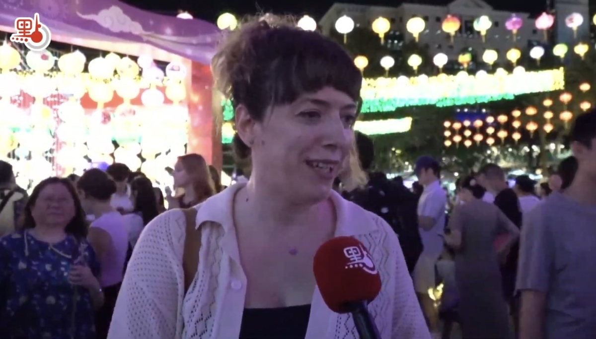 現場亦看到許多外籍人士的身影,來自西班牙的外國友人表示,這已是她連續第二年參加香港的中秋彩燈會。她最喜愛兔子造型的燈飾,並聽聞有關兔子和月亮的中國傳說。對於中秋節的了解,她提到中秋節人們吃月餅的習俗,她還稱讚這一傳統節日的氛圍很棒,現場的燈光、表演、一起來慶祝的一家人都顯得非常熱鬧。