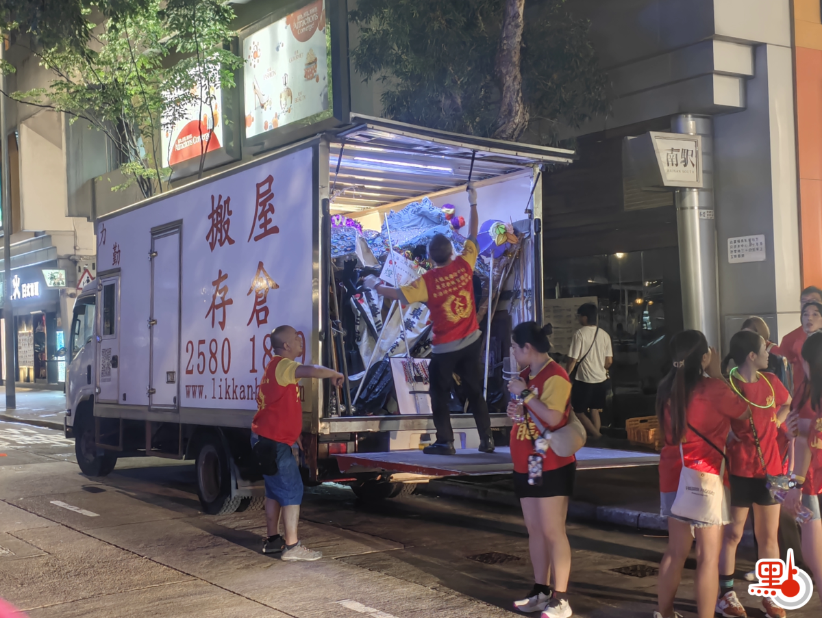 在連續舞動近兩個小時後,英歌隊在約10時左右收隊,不少市民爭相與他們合影。打扮成「插翅虎雷橫」的蔡先生是本次英歌舞表演的一員,他介紹,自己對英歌舞十分熱愛,雖平日在深圳做電子產品銷售,但一有活動便會化身英歌舞隊一員。他深感香港市民的熱情,並和隊員們齊聲表示:「下次還來!」