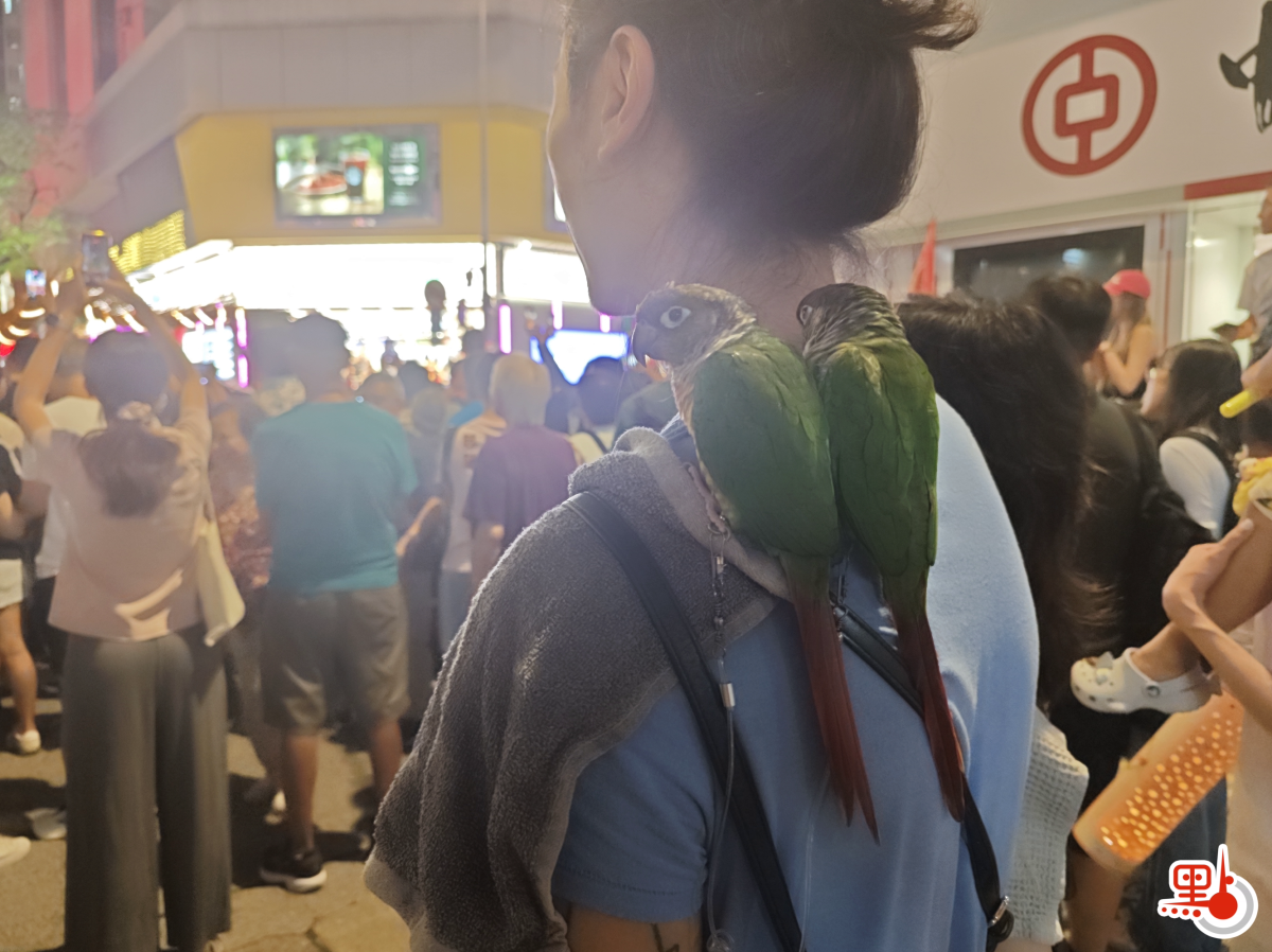 市民張先生本次帶着兩隻愛寵鸚鵡前來看舞龍。他表示,自己住在九龍,平日少來港島,舞火龍更是從未見過,今次特地來到香港仔觀賞,大讚演出精彩,現場十分熱鬧。張先生笑着說,舞火龍已有百年歷史,本次也想帶着鸚鵡們了解一下香港的傳統文化。