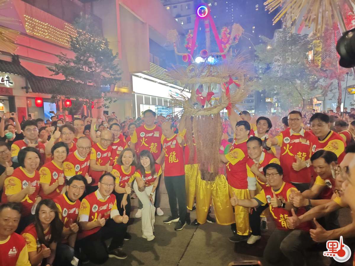 南區區議員張展聰本次全程參與了舞龍隊伍,但他遺憾表示,自己主要負責組織活動和引領隊伍,無機會體驗舞火龍。他介紹,本次活動與去年相比增加了不同地區的學校參與,由原來的兩間學校增至5間,總參與人數近500人。他回憶,活動自初辦到現在,規模不斷擴大,從以往一個舞獅隊招募小朋友,到現在與多間學校合作,來年,他也希望有更多不同學校學生參與,在舞龍中傳承傳統文化。
