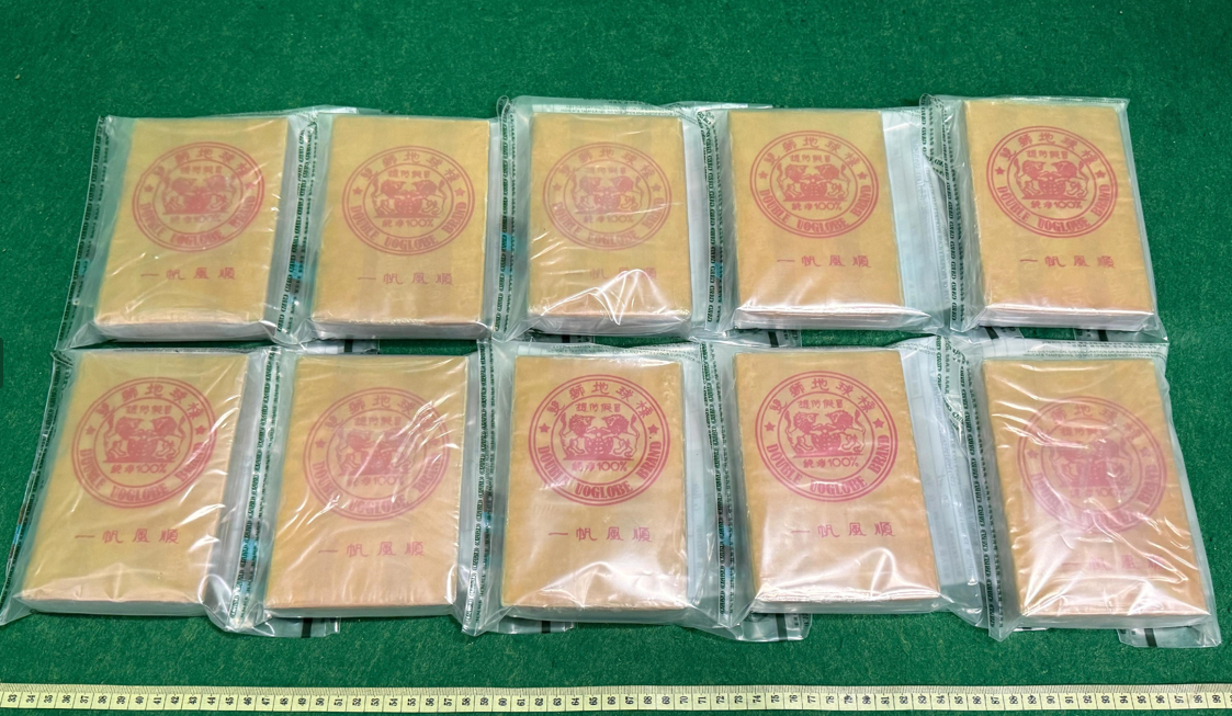 一名40歲男旅客今日從馬來西亞檳城飛抵本港。海關人員清關時,在其寄艙行李內發現該批懷疑海洛英,該名人士隨即被捕。被捕人士已被控一項販運危險藥物罪,案件將於明日(8日)在西九龍裁判法院提堂。