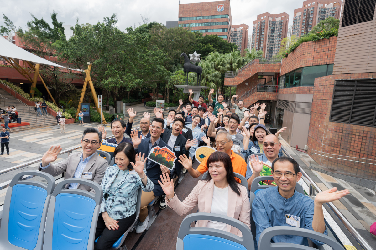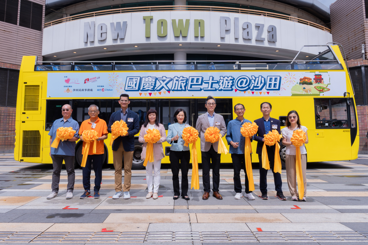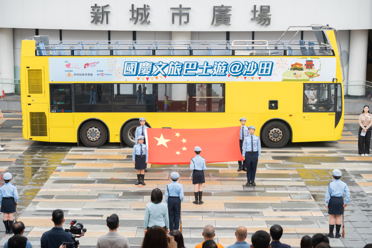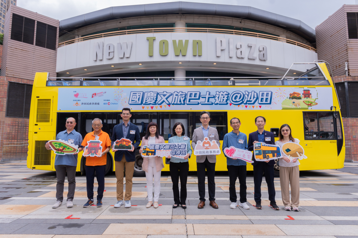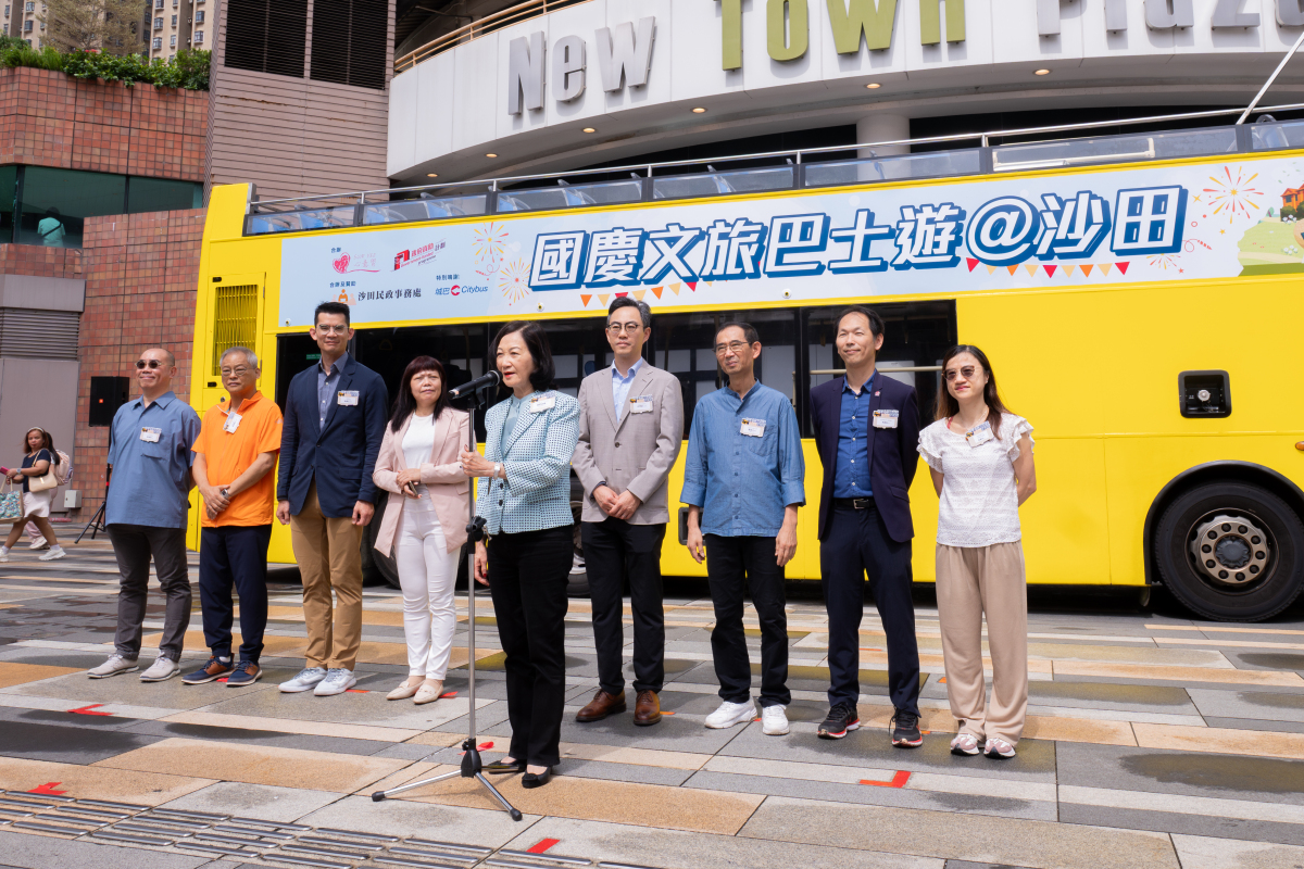 國慶前夕,沙田大會堂百步梯前洋溢節日氣氛,由沙田民政事務處與慈善機構心意習聯合主辦的「國慶文旅巴士遊@沙田」啟動禮順利舉行。活動邀得行政會議召集人、立法會議員葉劉淑儀、中央政府駐港聯絡辦新界工作部副部長朱宜華、沙田民政事務專員余懷誠太平紳士、香港警務處沙田警區指揮官陳樂生總警司、沙田各界大聯盟主席潘國山議員、沙田各界慶委會主席莫錦貴議員、城巴有限公司營運總監馬詹唯、香港賽馬會對外事務副總經理鄧建明、香港科技園公司市務部項目總監高寶玲9位主禮嘉賓出席,現場匯聚逾80位嘉賓及眾多市民,共同見證沙田首個開篷巴士活動在具標誌性地段——沙田市中心百步梯啟動的歷史事刻,為國慶黃金周增添精彩。