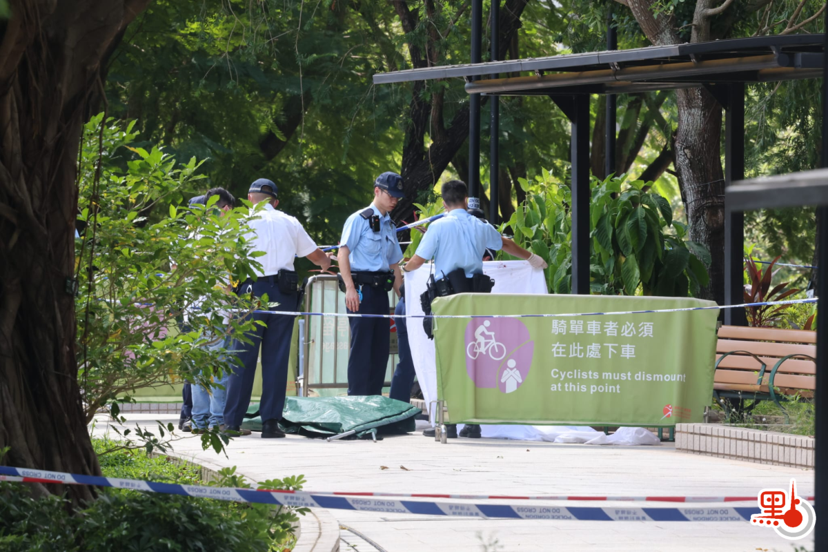 【點新聞報道】今日(8日)清晨5時許,警方接獲報案指,一名女子滿身鮮血,昏迷倒臥在天水圍公園近天瑞邨出口,救護員到場證實女子已經死亡。警方初步發現死者頸部有刀傷,附近檢獲一把15厘米長的刀及一把𠝹刀,不排除事件有可疑;直至中午12時許,警方經深入調查懷疑女事主割頸自殺,事件無可疑,列作自殺案處理,但現場未有檢獲遺書。
