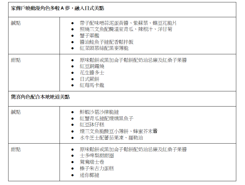 - 12:30pm - 2:15pm 家傳戶曉動漫角色多啦A夢,融入日式美點