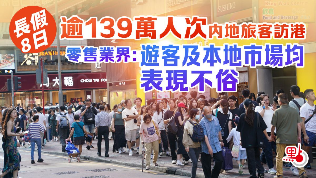 【點新聞報道】內地國慶中秋長假期昨日(8日)結束,累計有超過139萬人次內地旅客訪港。零售業界表示,本港零售業在黃金周期間整體表現穩定。香港零售管理協會主席謝邱安儀今(9日)早在一個電台節目上指,在黃金周期間零售業表現穩定,沒有出現「一面倒」的情況。