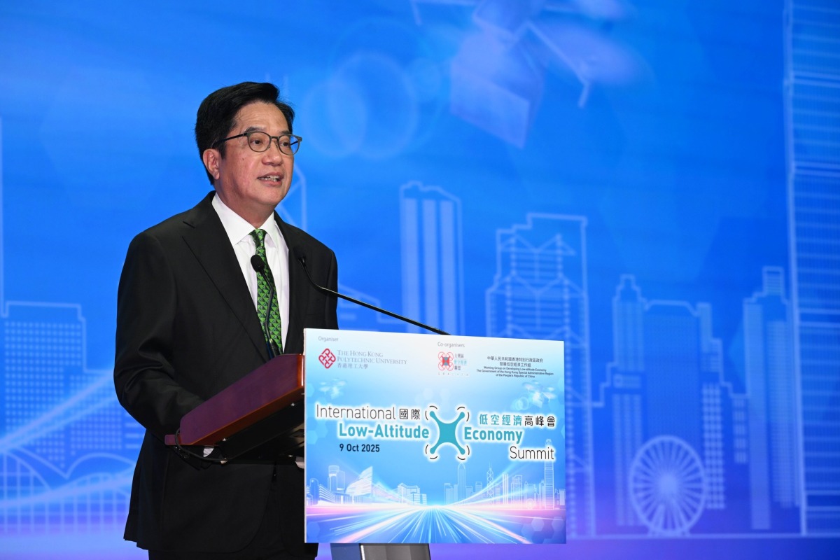 【點新聞報道】特區政府近年積極推進建設具競爭力的低空經濟生態圈,為助力推動粵港澳大灣區航空物流樞紐發展,國際低空經濟高峰會今日(9日)在香港理工大學舉辦。財政司副司長黃偉綸出席活動並表示,推動低空經濟不能單靠政府,而是要各界有心人士如香港理工大學等戰友共同參與。