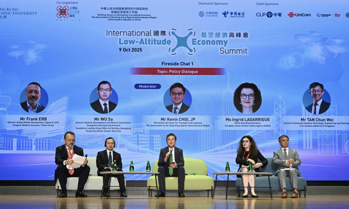 峰會中,運輸及物流局常任秘書長蔡傑銘主持以「低空經濟的政策對話」為題的爐邊談話,與來自廣州市發展和改革委員會、泰雷茲集團、歐洲航空安全局和新加坡民航局的頂尖專家,以國際視野從頂層規劃、科技賦能、規則護航和區域協同四大範疇深入交流。蔡傑銘分享他多年前推展新航空交通管理系統、有序部署香港國際機場三跑道系統運作的經驗,引領與會專家聚焦討論香港現在和未來可以如何參與和推進國家發展低空經濟的規劃藍圖、將低空經濟的巨大潛力轉化為實質經濟價值、推動全球標準協調,以及加強區域和國際合作,為產業發展提供穩定而具前瞻性的政策環境。