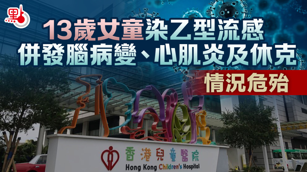 【點新聞報道】衞生署衞生防護中心今日(10日)公布一宗兒童感染乙型流感的嚴重個案,一名過往健康良好的13歲女童在10月5日開始出現發燒、咳嗽、喉嚨痛及流鼻水,她的徵狀持續,其後於10月9日在家中暈倒,隨即被送到威爾斯親王醫院急症室,同日被轉送香港兒童醫院。她的鼻咽拭子樣本經化驗後,證實對乙型流感呈陽性反應,臨床診斷為乙型流感併發腦病變、心肌炎及休克。她目前仍在兒童深切治療部留醫,情況危殆。