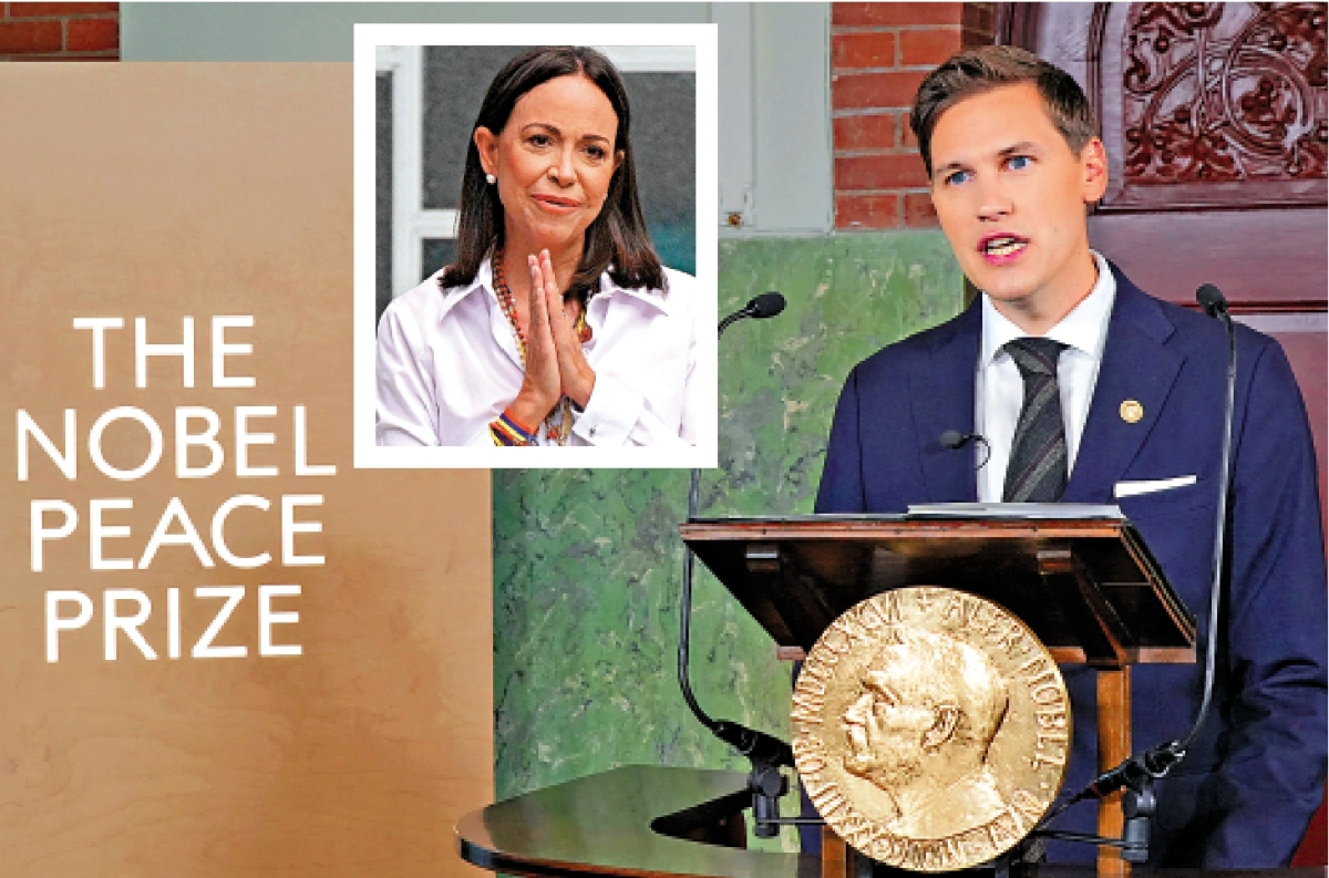 大公報綜合報道,挪威諾貝爾委員會10日宣布,2025年諾貝爾和平獎得主是委內瑞拉反對派領袖瑪麗亞·科里娜·馬查多,而不是多次公開表示渴望獲獎的美國總統特朗普。白宮在社交媒體上批評諾貝爾委員會「將政治置於和平之上」。諷刺的是,美國長期扶植委內瑞拉反對派,圖謀推翻馬杜羅政府。今年1月,特朗普曾在社媒發文支持馬查多。有分析指出,特朗普可能因沒能獲獎而報復挪威,採取加徵關稅等措施,甚至可能宣布挪威為「敵國」。