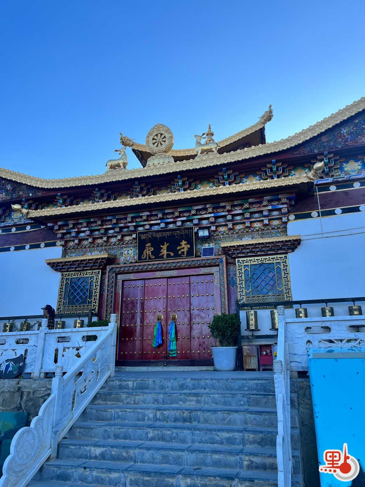 抵達飛來寺時,正值中午。飛來寺建於明萬曆42年,因傳說中它「從天而降」而得名。寺外的欄桿上掛滿了充滿藏族特色的彩色經幡,隨風輕拍。此里為他們解說:「這是慈悲的白度母,那是觀世音菩薩化身的綠度母,都是村民掛來祈福的。」他叮囑,千萬不可用手指直指神山,那是極不禮貌的。我們應該要張開手掌示意,才是對山的尊重。