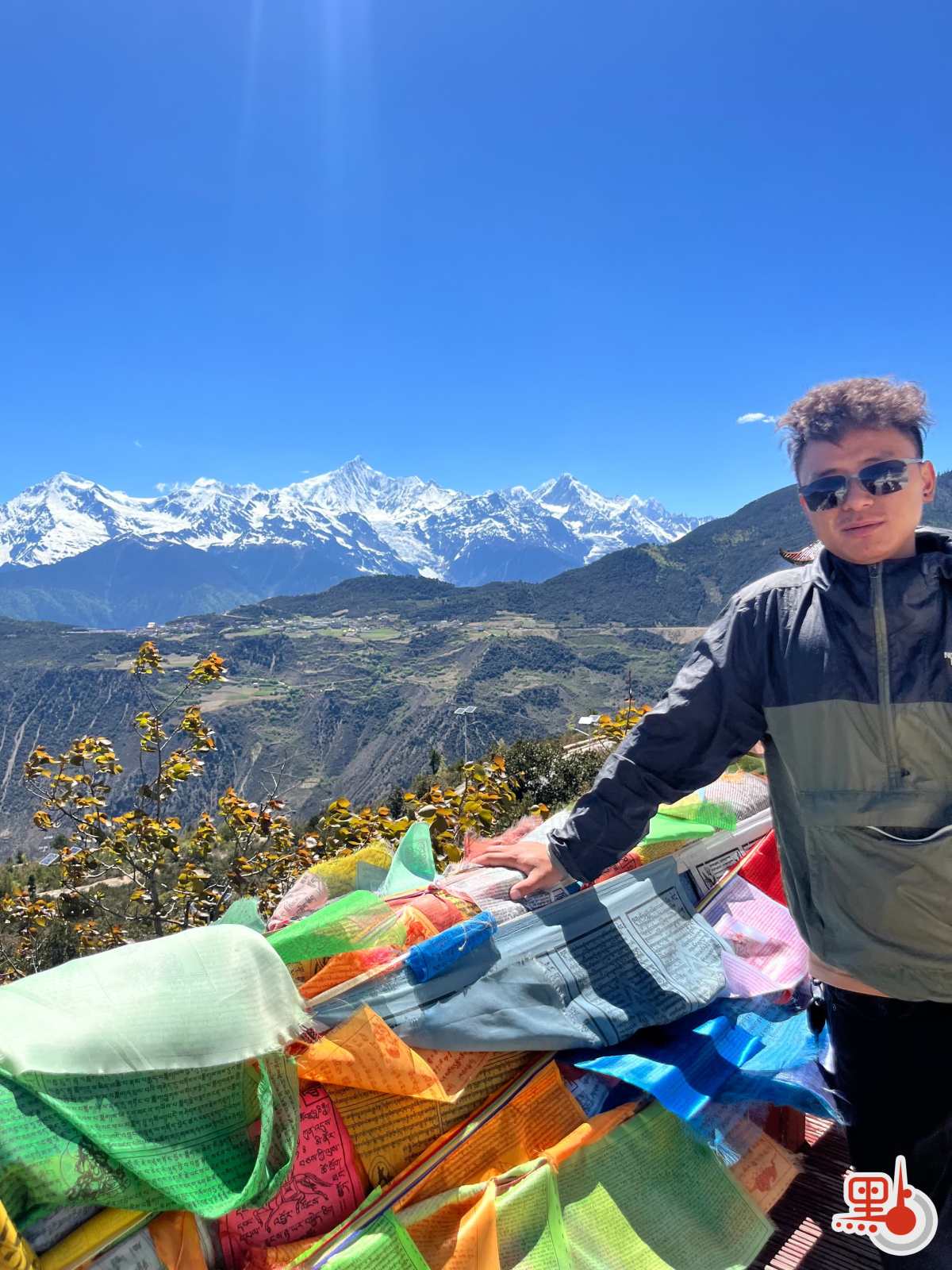在麗江盤桓數日,像是一場未完成的對話,從瀘沽湖和玉龍雪山回來後,看見麗江古城的喧囂和玉龍雪山上過度商業化的氣息,總覺得心裏還空着什麼。對於山林的想像,就像在古城邊徘徊,渴求更純粹的風景。於是,我把目光投向了更遠的秘境——梅里雪山。它位於雲南迪慶藏族自治州德欽縣,是在四川、雲南和西藏的交界,大概是在麗江西北方向300多公里外。記得上個月友人曾向我極力推薦雨崩村,那是徒步者的天堂,一個隱藏在梅里山谷的小村莊。略作攻略後,我便報名了一個小型徒步團,翌日清晨就能成團啟程。電話那頭打來與我確認時,跟我說加上我剛好7個人,我心中嘀咕,怕是要成為三對情侶旁那個多餘的電燈泡了。