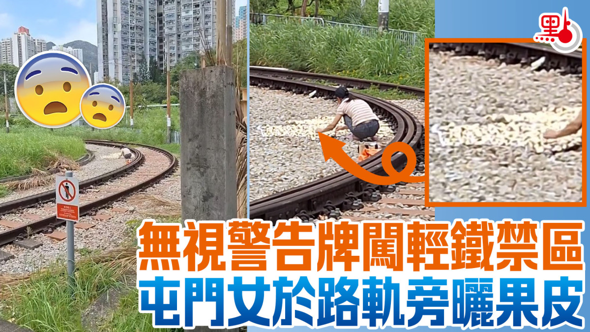【點新聞報道】亂闖路軌十分危險!近日網上瘋傳1段影片,顯示屯門有女子闖入輕鐵路軌範圍曬陳皮,網民直言「可唔可以罰晒呢班人錢」。有街坊留言表示,「點止曬果皮呀 仲喺度晾衫添」。