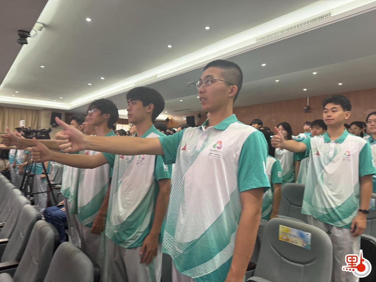 活動尾聲舉行莊重的授旗儀式。35名十五運會和殘特奧會開幕式志願者代表,以及來自場館站、交通樞紐站、社區站和共建站的9名城市志願者代表依次上台接旗。「這面旗幟承載的不僅是榮譽,更是責任,是對賽會的莊嚴承諾,我們準備好了!」楊竣傑說,14年前,他在廣州亞運會與志願者工作結緣,如今也想把這份溫暖繼續傳遞下去,做粵港澳大灣區融合發展的橋樑紐帶。
