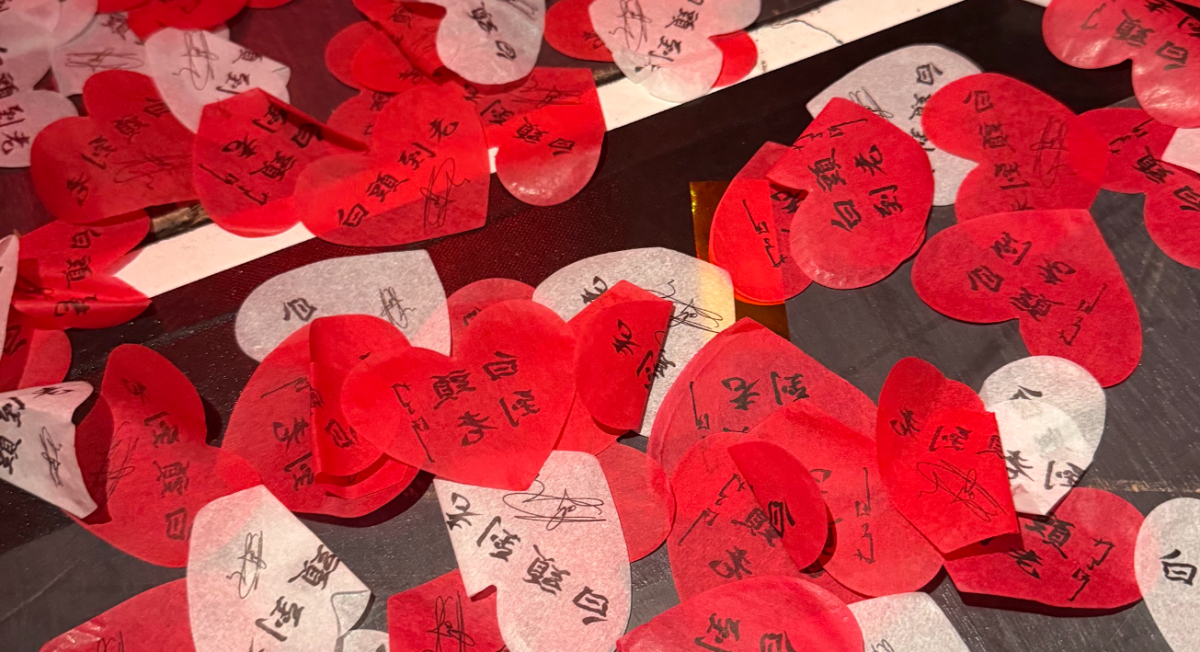 昨晚的演出繼續有驚喜彩蛋,歌單加插《情人知己》,粉絲聽到拍爛手掌。不過最冧爆的,絕對是演唱《我愛你》時,舞台兩側噴出印有「白頭到老」四個大字,紅、白心心並有阿Lam及Sally簽名的彩紙,整個紅館下着「愛心雨」,浪漫升級,甜蜜滿瀉。其實第二場尾聲已經噴過阿Lam及Sally的得意公仔彩紙,今次再玩新意,令觀眾驚喜萬分。
