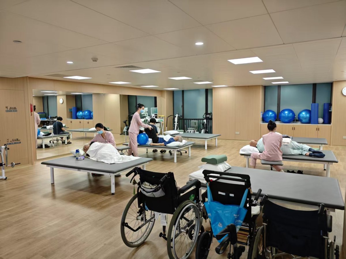 院舍副院長李素芳表示,該院舍內還在1到3樓設有二級醫院診所,長者在發現異常情況後5分鐘內可轉運至院內急救。其中,診所醫護團隊逾300人,設有100張病床及螺旋CT、核磁共振等先進設備,提供內科、外科、牙科、中醫等醫療服務。此外,院內還設置了戲院、門球場、康復室等不同活動設施免費為入住長者開放。