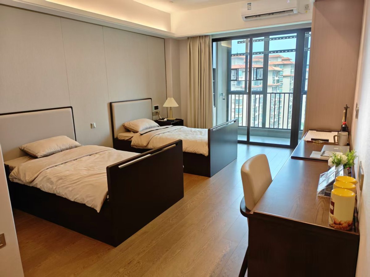 記者現場觀察,房間採用無障礙設計,配備帶扶手的獨立衞浴、露台、雪櫃等設施,床位還配備了生命體徵監測裝置,並在廁位和床頭都設置了緊急呼叫鈴,觸發後會立即響起警報,以便護工即時支援。值得一提的是,該院早在建設時就在8樓和9樓專設了「港澳專區」,區域護工大多會講粵語,以便溝通。