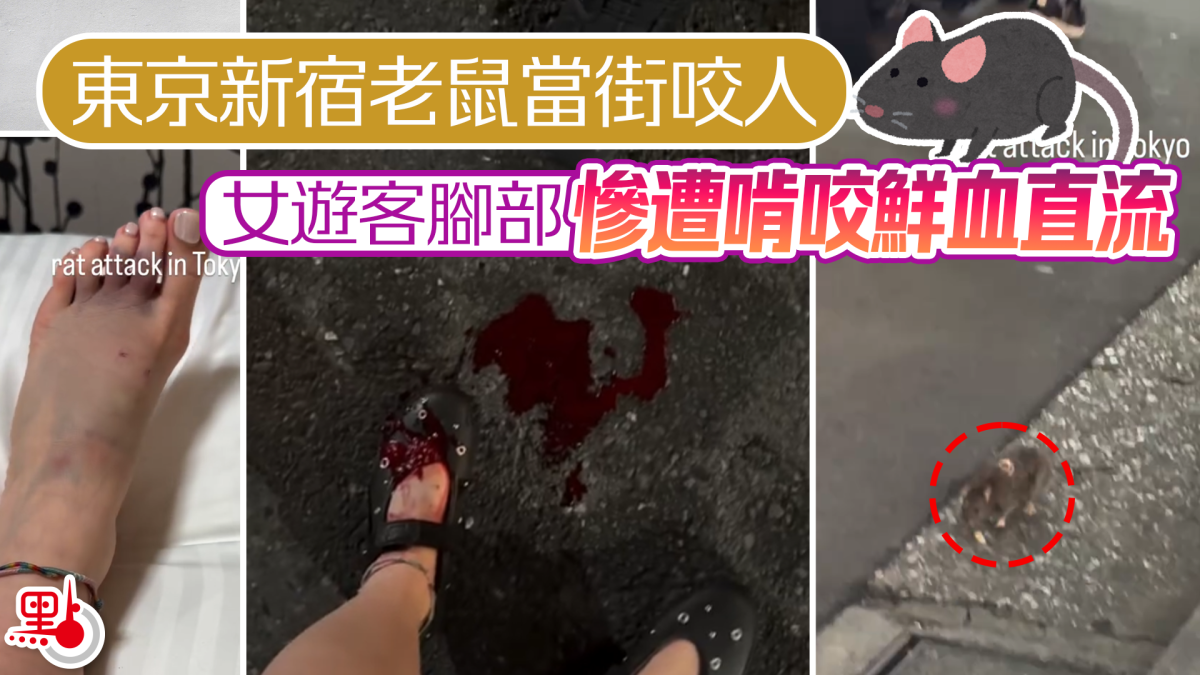 據日媒報道,凌晨3時,該名來自杜拜的女遊客正準備步行回酒店,突然間她感覺腳好像被啃了一下,低頭竟發現有隻老鼠在咬她的腳背,女遊客的腳背當場鮮血直流。從該名女遊客上傳的影片中可見,東京新宿街頭堆滿垃圾,老鼠橫行且不怕人。而女遊客的腳背上則有兩個疑似老鼠牙印的圓形小孔,腳部多處淤青,女遊客直言「東京鼠幫破壞了我的一天」。