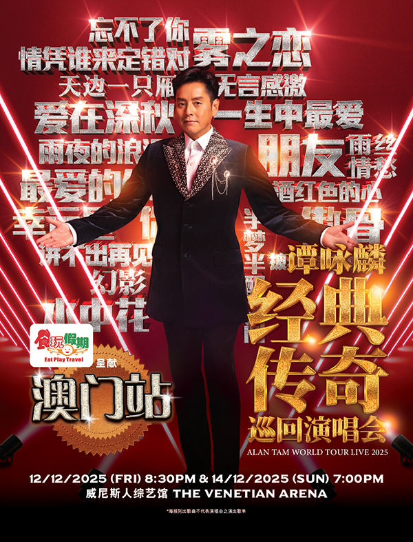 【點新聞報道】「譚校長」譚詠麟將於12月12日及14日在澳門威尼斯人綜藝館舉辦「經典傳奇巡迴演唱會」,門票明天(14日)中午12時公開發售,只限網上及電話訂票。由於香港未有檔期再舉行此演唱會,意味澳門站是此次巡唱的最後一站。