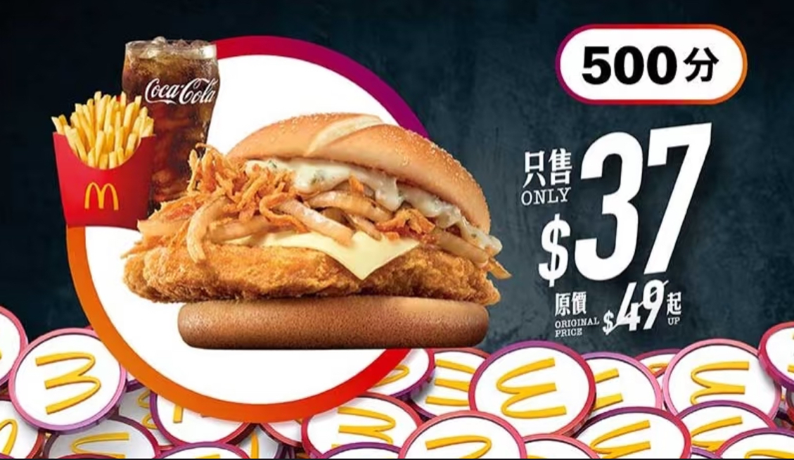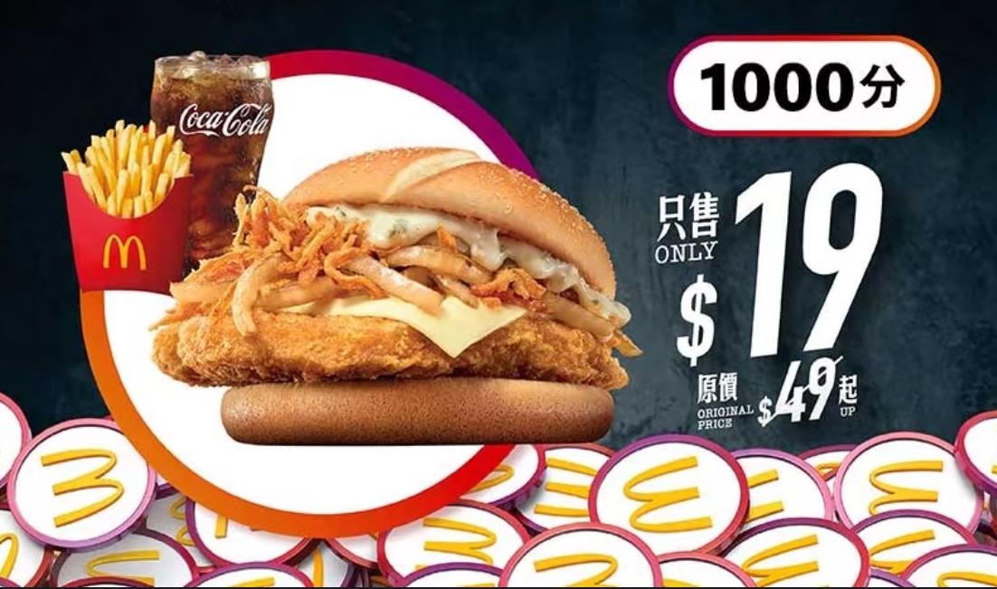 麥當勞App會員記得用積分兌換優惠券,現時只需以$19加1000分或以$37加500分即可嘆「鋒味洋蔥吉列豬扒飽套餐」。喜愛經典口味的粉絲亦可選擇「$38芝士安格斯套餐」,經麥當勞App或直接到餐廳的自助點餐機或櫃枱點餐均可享受此優惠。