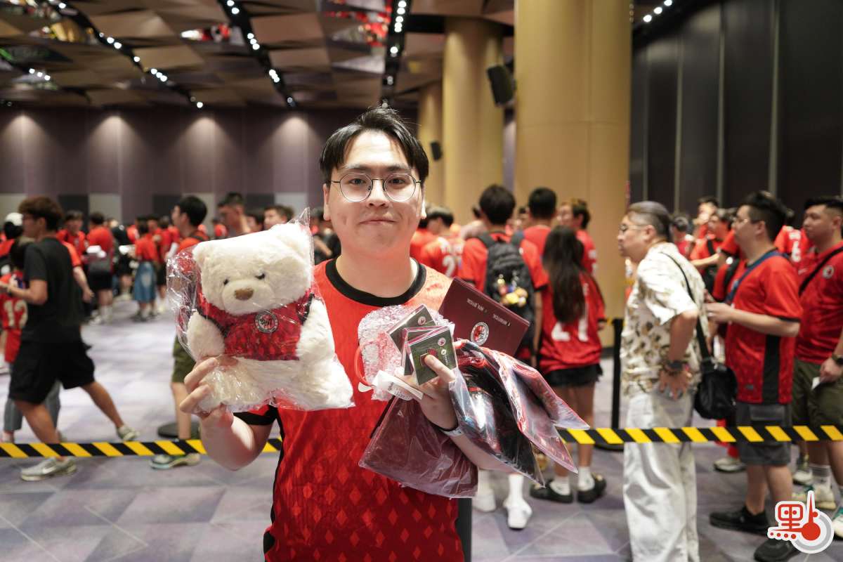 首次來啟德看球賽的香港市民范先生表示,早前在搶票系統排隊約1個小時成功買到門票,心情十分興奮,看到上周港隊作客孟加拉最終反擊4比3獲勝,因此更加期待這場比賽。他指出自己亦是「勝利球迷」,看到香港足球隊有如此優異成績,一定要支持,希望今晚也能取勝,繼續穩定「佔領」排行榜首。此外,他向記者展示了今日購買的紀念品,「花費約2500港幣,有紀念徽章、紀念熊等。」