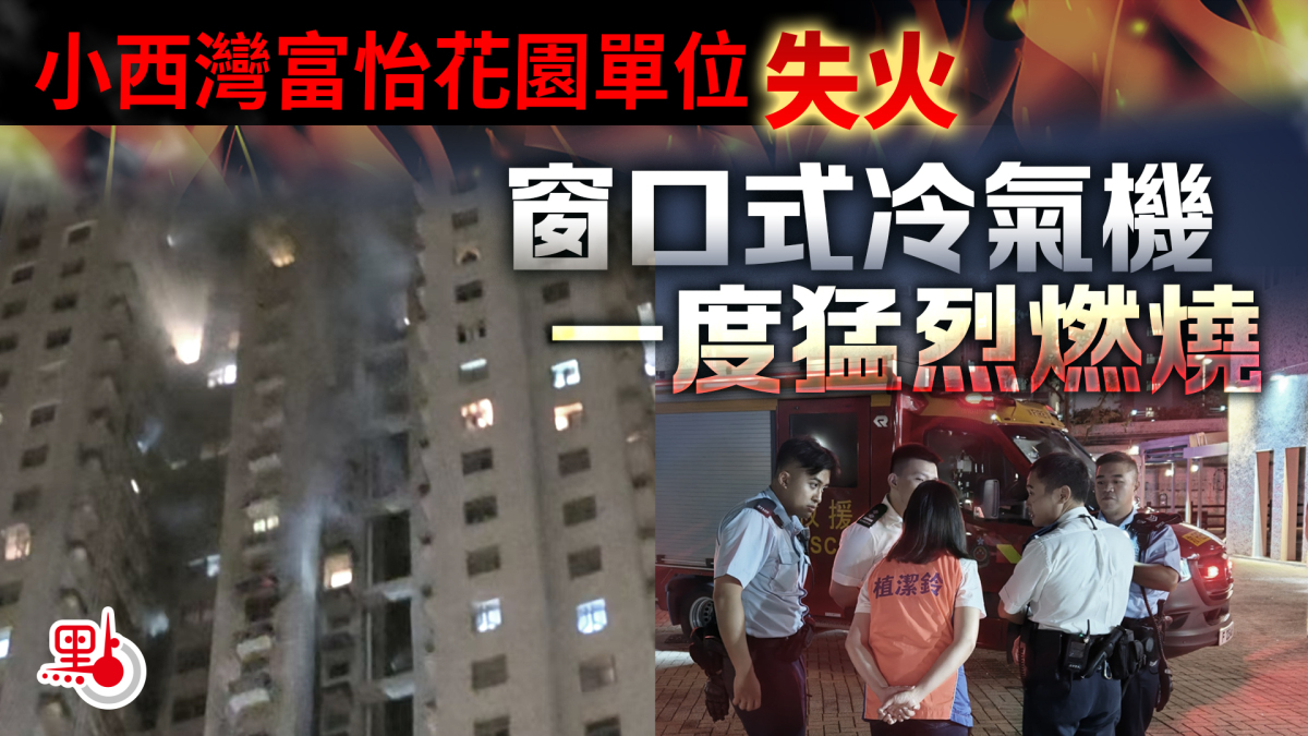 【點新聞報道】今晚(14日)6時51分,小西灣道富怡花園二座一單位突然失火冒出濃煙,街坊見狀報案。據現場消息,單位的窗口式冷氣機起火燃燒,火勢一度十分猛烈。