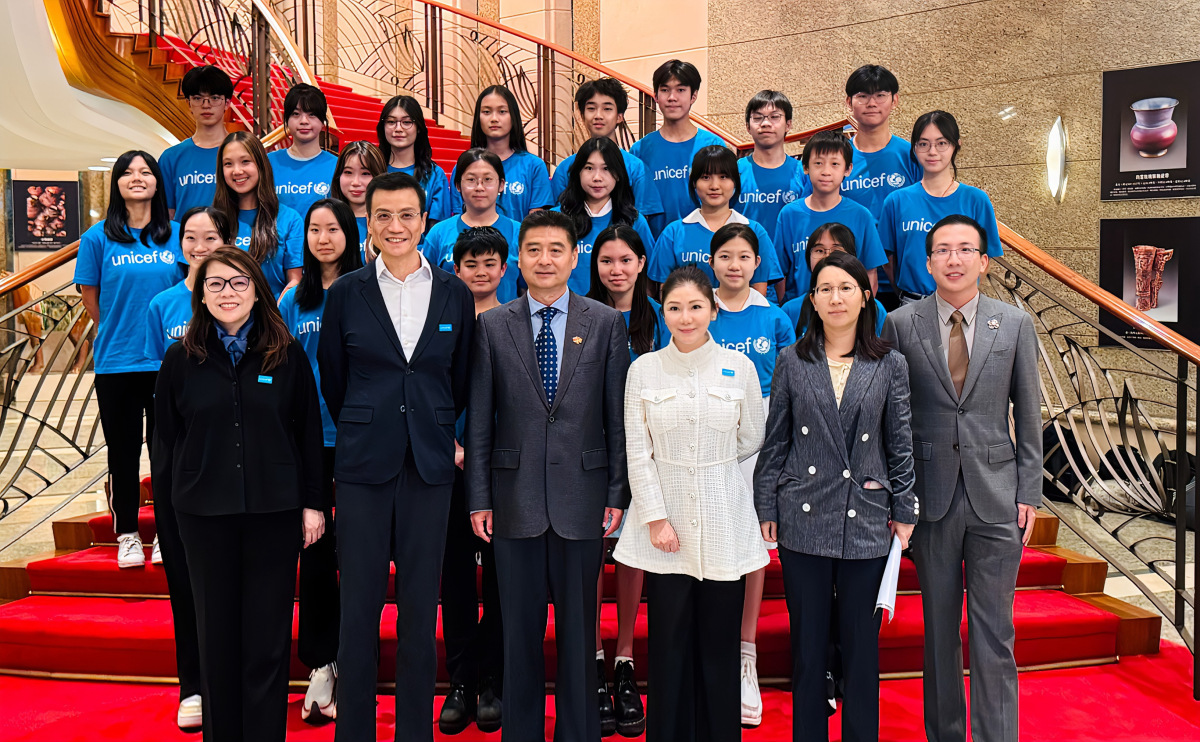 【點新聞報道】聯合國兒童基金會(UNICEF)青年使者日前參訪中華人民共和國外交部駐香港特別行政區特派員公署(外交公署)。外交部駐港公署副特派員花有、聯合國兒童基金香港委員會(UNICEF HK)主席陳晴出席活動並致辭,外交部駐港公署國際部副主任盧可、UNICEF HK委員朱國樑等均有參與。