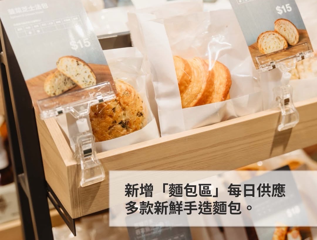 MUJI com亦新增「麵包區」,每日供應多款新鮮手造麵包。此外,MUJI com港鐵青衣站更增設「COFFEE STAND」自助精品咖啡機,選用本地咖啡烘焙廠新鮮烘焙的精品咖啡豆,即時研磨製作多款冷熱飲品。