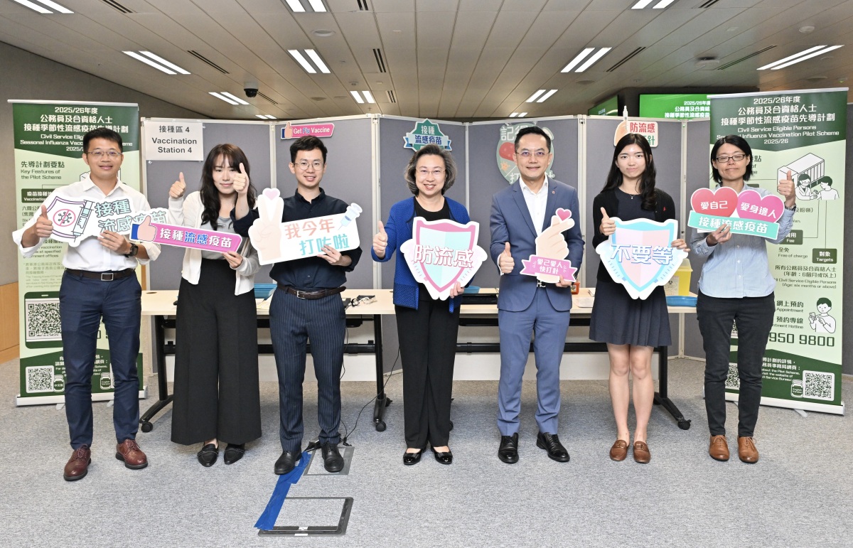 公務員事務局局長楊何蓓茵表示,打流感針,宜早不宜遲。公務員經常有機會接觸市民,接種疫苗可以更好保障公務員及其服務的市民的健康,減低流感在工作間以至在社區傳播的風險,更可以減低公務員患病對公共服務的影響。楊何蓓茵鼓勵更多公務員同事及早接種疫苗。