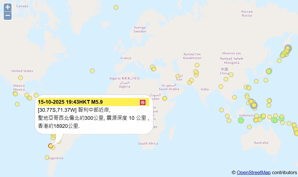 【點新聞報道】根據歐洲-地中海地震中心報告,當地時間15日8時43分,智利中北部沿海地區發生5.6級地震,震源深度44.4公里。目前暫無人員傷亡及財產損失報告。