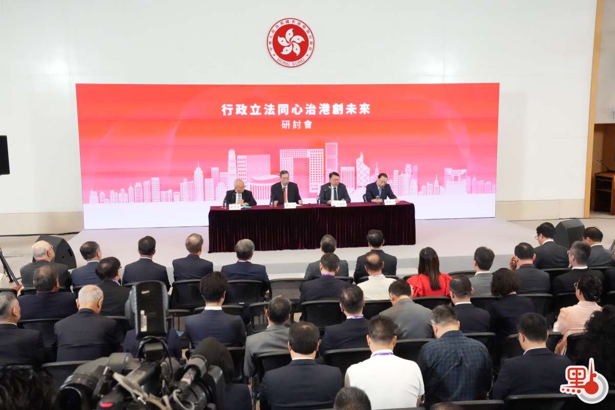 行政長官李家超在研討會作主旨發言,政務司司長陳國基、立法會主席梁君彥、香港再出發大聯盟秘書長譚耀宗,以及全國港澳研究會顧問劉兆佳教授作專題演講。