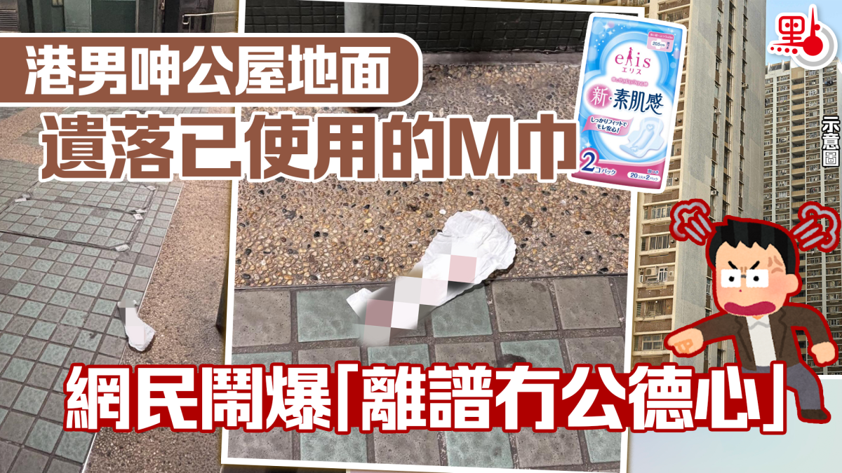 【點新聞報道】近日有港男於網上發文呻在公屋附近地面看見遺落已使用過的衞生巾,帖文掀起網上熱議,網民怒斥此舉離譜冇公德心。