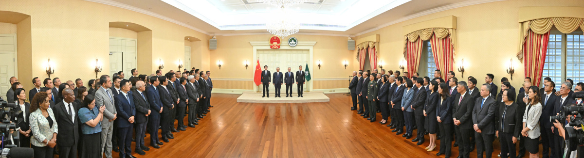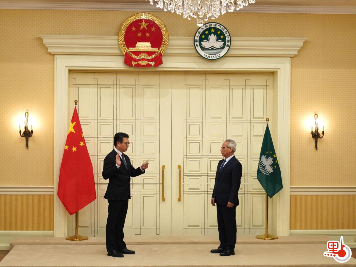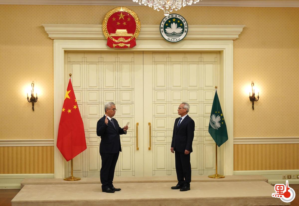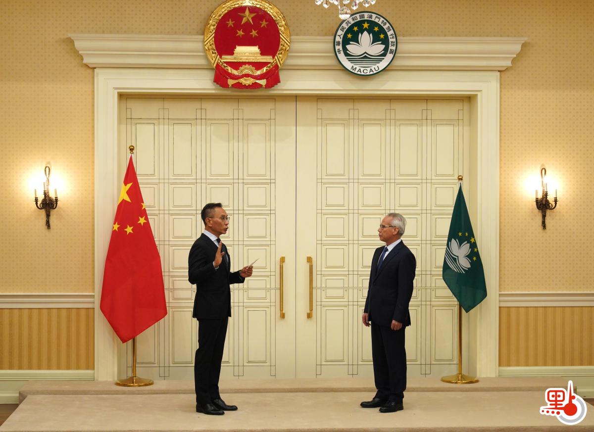 【點新聞報道】澳門新任行政法務司司長黃少澤、保安司司長陳子勁、檢察院檢察長唐曉峰的宣誓就職儀式今日(16日)在政府總部舉行,全國政協副主席何厚鏵、中央政府駐澳門聯絡辦公室主任鄭新聰、外交部駐澳特派員公署特派員劉顯法、解放軍駐澳部隊司令員于長江等嘉賓見證儀式。