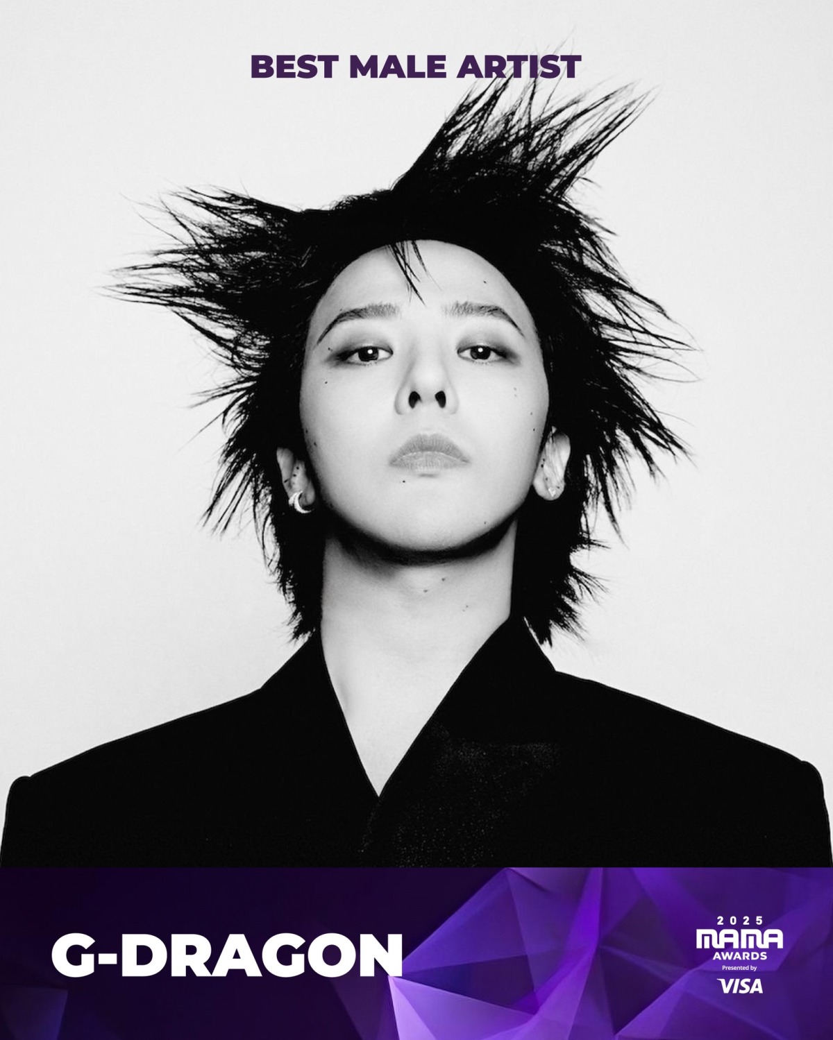 【點新聞報道】韓國年度音樂盛事《MAMA音樂頒獎禮》相隔7年,將於11月28及29日假啟德體育園主場館舉行,入圍名單今日(16日)透過官方頻道公開。今年重返樂壇的天團Big Bang隊長G-Dragon(GD)與防彈少年團(BTS)成員Jin、j-hope、NCT成員Mark及EXO成員伯賢一同角逐最佳男藝人。