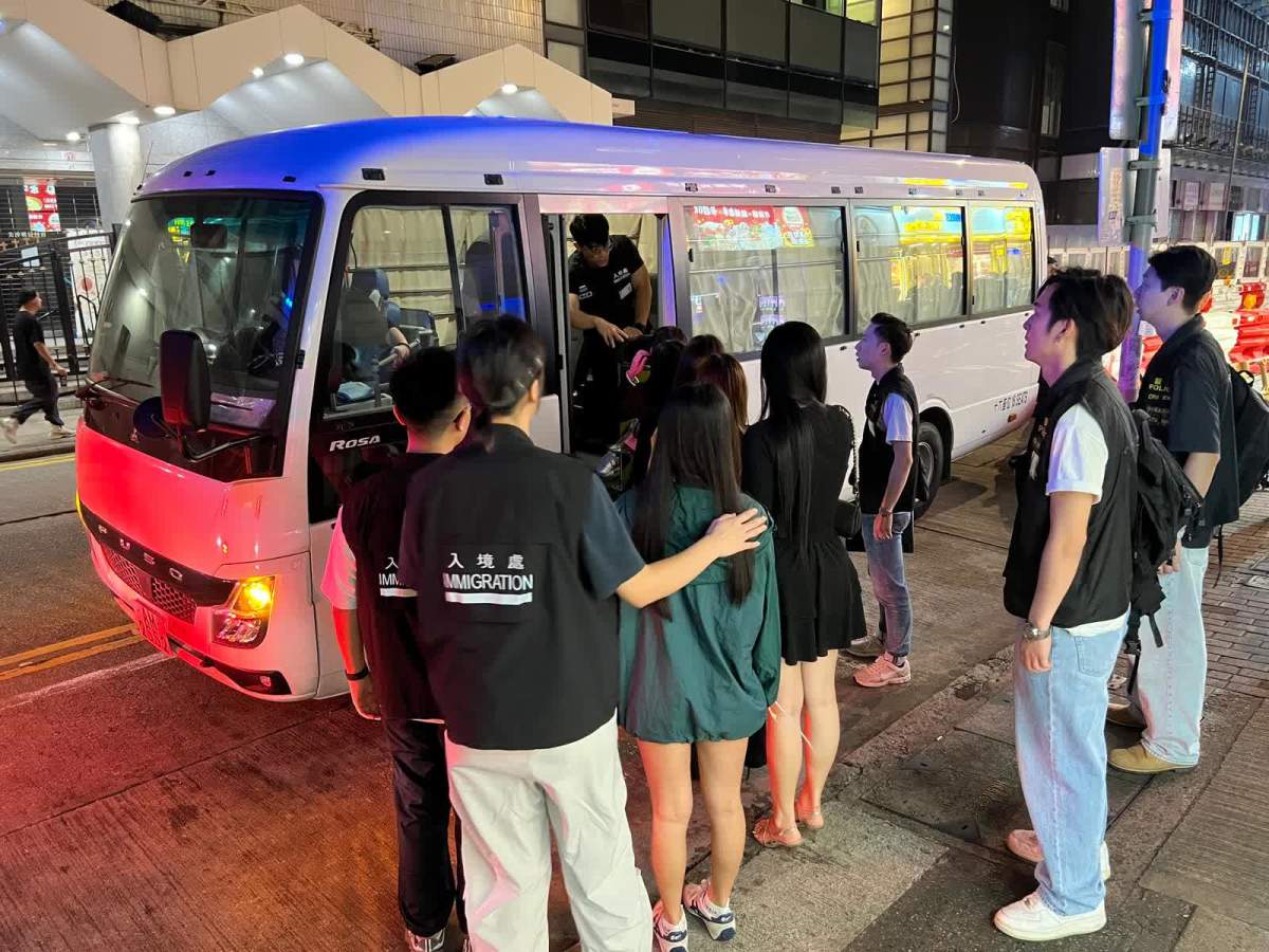 行動中,警方派員放蛇喬裝顧客,在尖沙咀金馬倫道一樓上酒吧,拘捕30名年齡介乎24至42歲外籍女子,她們涉嫌違反逗留條件;另外一名本地男子、3名本地女子及一名外籍女子,年齡介乎36至54歲,涉嫌串謀僱用不可僱用人士被捕。所有被捕人現正被扣留調查。