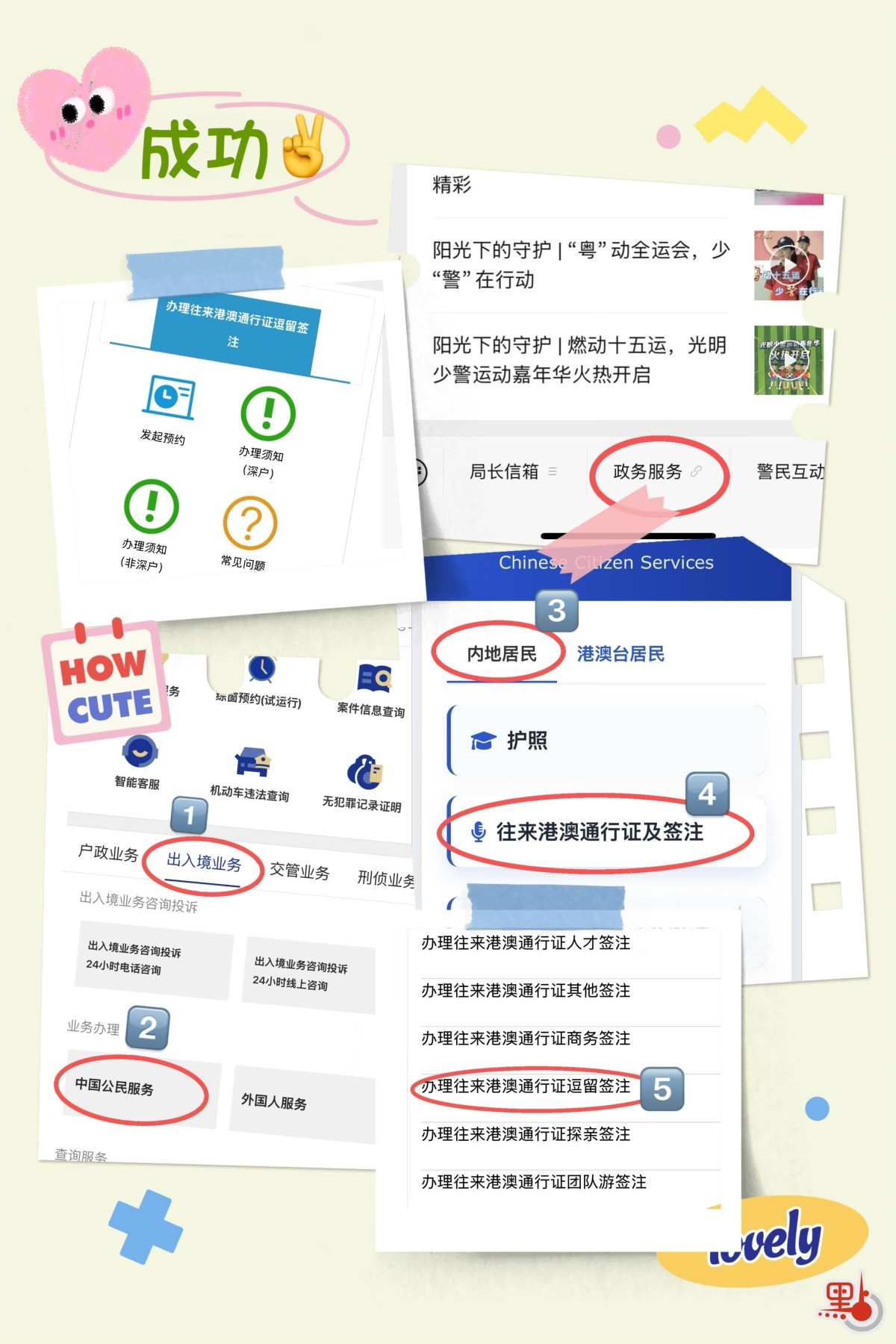 📱 深圳公安 → 政務服務 → 出入境業務 → 業務辦理 → 中國公民服務 → 內地居民 → 往來港澳通行證及簽注
