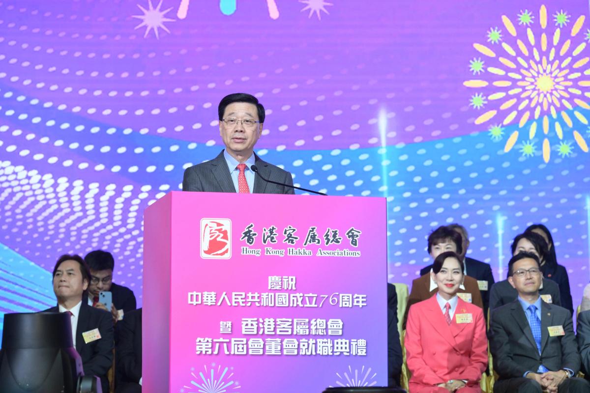 【點新聞報道】慶祝中華人民共和國成立76周年暨香港客屬總會第六屆會董會就職典禮今日(17日)舉行,行政長官李家超致辭時表示,第八屆立法會選舉的提名期將於下星期五,即10月24日展開,他鼓勵愛國愛港立場堅定、熱心服務社會、才德兼備的優秀人才積極參選。全香港市民、全香港社會,包括各位客籍鄉親,都應行使公民權利和履行公民責任,為自己、為香港的利益,在12月7日投票日踴躍投票,並積極鼓勵身邊的家人、朋友、鄉親,都一同為香港這個共同家園投票。
