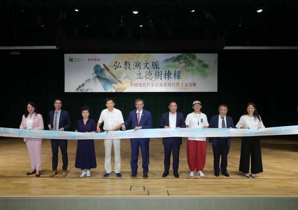 【點新聞報道】為提升學生的文學素養、增強學生對中國當代歷史和現實的認識,並紀念中國人民抗日戰爭暨世界反法西斯戰爭勝利80周年,香港教育大學(教大)與香港商報聯合舉辦「中國知名作家走進香港校園」交流活動,並於昨日(17日)在大埔校園舉行啟動禮。特邀中國當代著名作家及編劇黃亞洲與衣向東走進校園,與數百位師生展開多場有關文學的深度對話。
